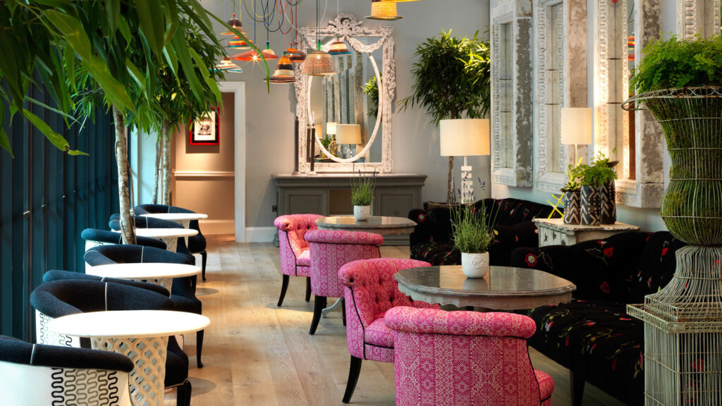 Kit Kemp, Creative Director von Firmdale, zeichnet für das Design. Sie setzt lebendige Farb- und Musterwelten, Vintage-Möbel und Kunst neu in Szene. Jeder Raum erzählt durch Stoffe, Texturen und überraschende Details von ihrem künstlerischen Blick.