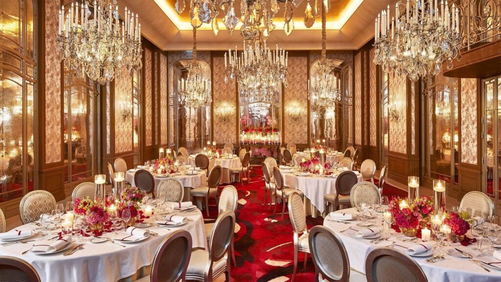 Im Herzen des Hotels entfalten sich kulinarische Welten: das Alain Ducasse für Haute Cuisine, das Le Relais Plaza für Pariser Eleganz, die Champagnerbar und die ikonische Galerie für leichte Köstlichkeiten am Nachmittag.