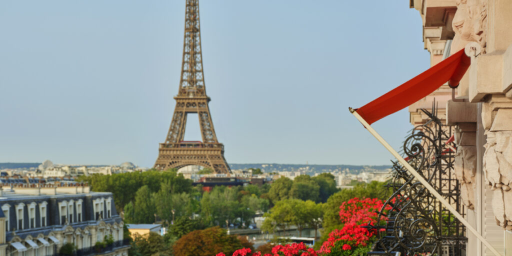 Die rote Markise des Plaza Athénée ist weltberühmt, doch wahre Kenner lieben die versteckte Cour Jardin, wo im Sommer unter Lichterketten Champagner serviert wird.
