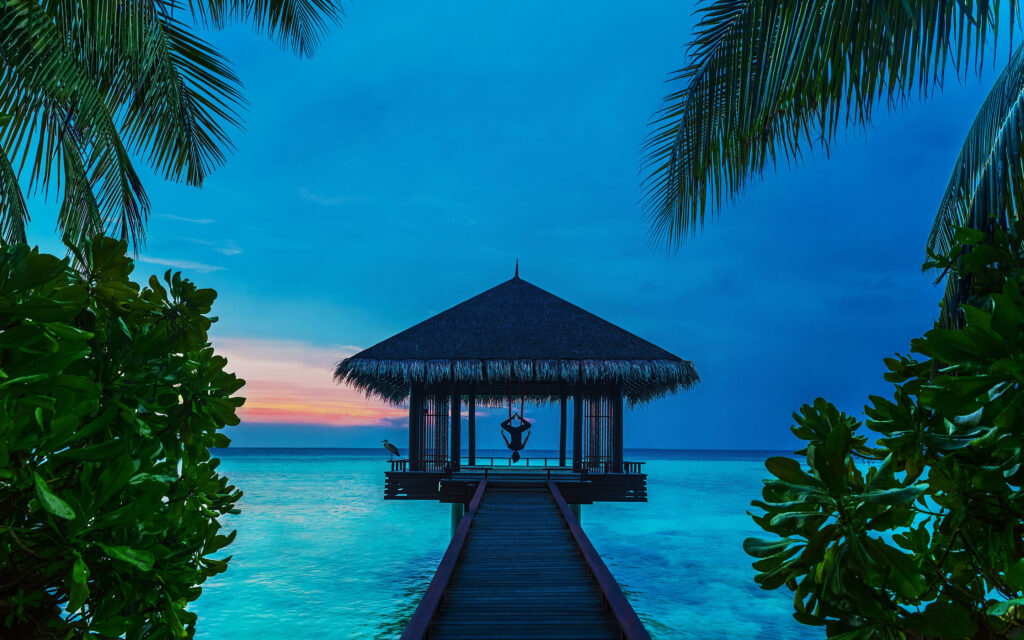 Die Insel ist in zwei Hälften geteilt und verbunden durch eine ikonische Brücke. Zwölf Strände garantieren Privatsphäre. Tapasake gilt als spektakuläres neues Restaurant über Wasser mit Design und Genuss.