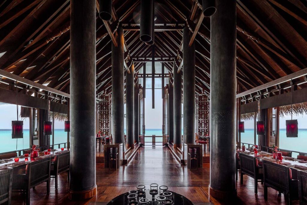 Acht Restaurants und fünf Bars verwöhnen mit kulinarischer Vielfalt: Reethi vereint mediterranen Stil, Botanica setzt auf Gartenküche, Rabarbaro italienische Feinheiten, Tapasake japanische Inspiration über dem Meer.