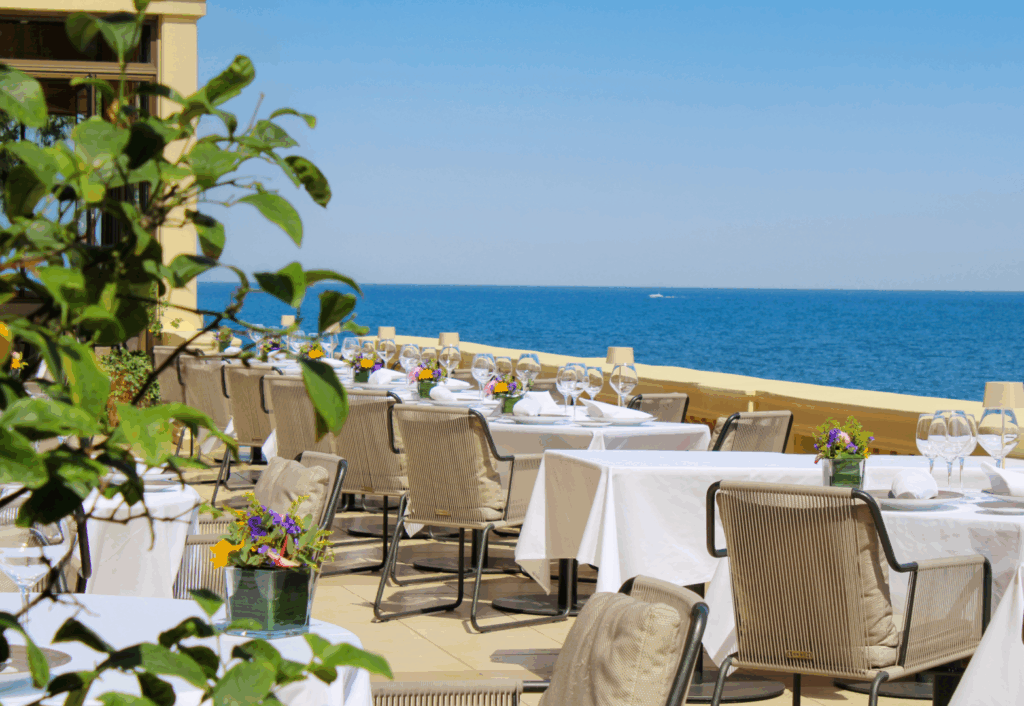 „La Table du Royal“ serviert raffinierte französische Gourmetküche mit Meerblick, während das „Jasmin Grill & Lounge“ am Pool internationale Speisen mit Tandoor-Noten bietet. Die Bar le Cap lädt im Garten zur entspannenden Stunde mit Aperitif.