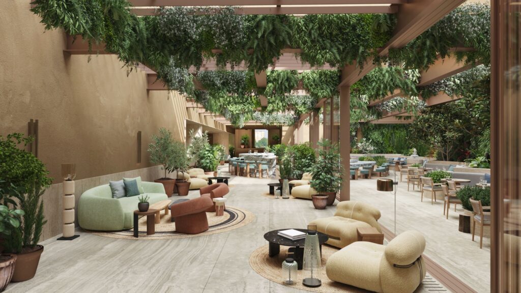 Die 96 Zimmer und Suiten verbinden römische Eleganz mit modernem Design. Naturstein, sanfte Farben und handgefertigte Möbel schaffen eine warme Atmosphäre. Nachhaltige Materialien prägen jedes Detail. Einige Suiten verfügen über private Terrassen mit Blick über die Dächer Roms.