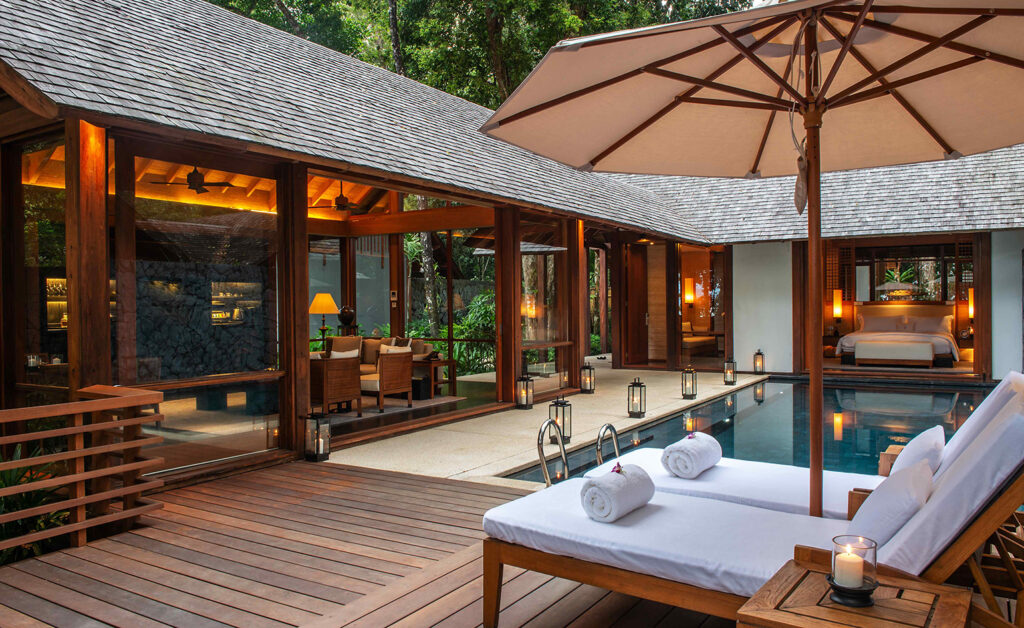 Die Unterkünfte umfassen luxuriöse Canopy-Zimmer mit Waldblick, freistehende Rainforest-Villen, die tief im Dschungel liegen, und Beach-Villen mit privatem Zugang zum Sandstrand. Alle sind elegant gestaltet und bieten absolute Privatsphäre.