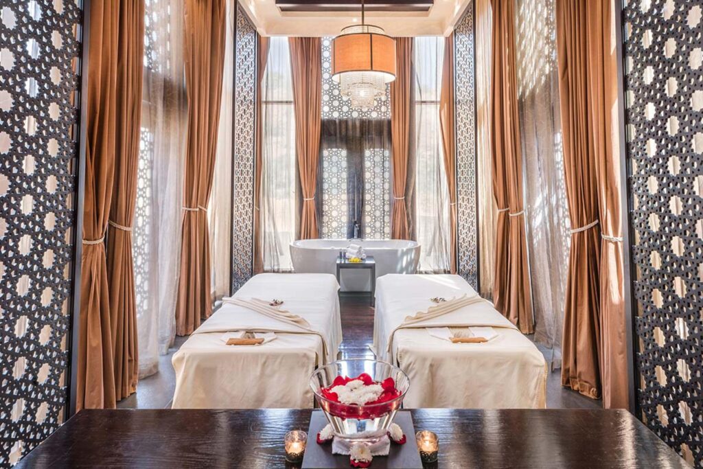 Die Villen bieten luxuriöse Ausstattung mit privatem Pool, großzügigen Terrassen, eleganten Bädern und moderner Technik. Es gibt zwei Stile: Al Khaimah Tented Pool Villas im Zelt-Stil und traditionelle Brick Villas .