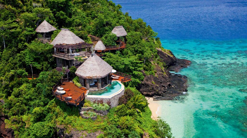 Das exklusive tropische Refugium mit seinen 25 Villen im Fidschi-Stil, inmitten von Kokosnussplantagen liegt an einem einsamen Strand und ist umgeben vom Dschungel. Die Villen allesamt glamouröse Versionen traditioneller fidschianischer Häuser, bieten beispiellose Exklusivität und Privatsphäre an dramatischen und sehr unterschiedlichen Orten an der Nordküste der Insel.
