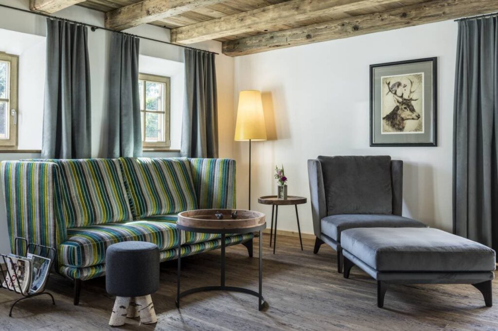 Im Heimatrefugium Gut Steinbach in Reit im Winkl erwartet Sie das 2.000 qm große Heimat & Natur SPA mit einem 16 m Pool, verschiedenen Saunen und Ruheoasen, ausgestattet mit naturbelassenen Materialien aus der Region. Dort können Sie durch Anwendungen von GERTRAUD GRUBER KOSMETIK, tief in die Welt der Entspannung eintauchen und ganzheitliche Wohlfühlmomente genießen.