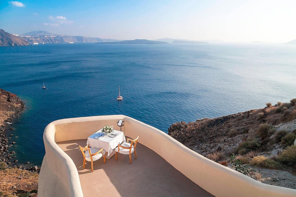 Mystique ist ein beliebtes Ziel für Flitterwochen und romantische Rückzugsorte. Die 41 Suiten und Villen, zwei Swimmingpools, ein asiatisches Spa sowie ein modernes Fitnessstudio sind durch gepflasterte Wege miteinander verbunden und bieten einen unvergleichlichen Panoramablick auf das Meer und den aktiven Vulkan, der die Landschaft dieser außergewöhnlichen Insel geprägt hat. Die im Höhlenstil erbauten Suiten und Villen aus Naturstein verfügen über abgeschiedene Terrassen mit Blick auf die tiefblaue Ägäis und den Vulkan. Jede Unterkunft ist mit viel Liebe zum Detail eingerichtet, wobei lokale Materialien wie Treibholz und Stein im Vordergrund stehen.