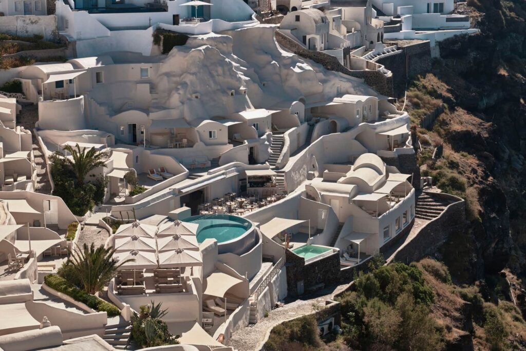 Mystique ist ein exklusives Refugium auf der Insel Santorin und ein idealer Ausgangspunkt, um die Insel zu erkunden. Hier lassen sich die einzigartigen Traditionen, die romantische Atmosphäre und die wilde Schönheit Santorinis auf eindrucksvolle Weise erleben. Eingebettet in die steilen Klippen der Caldera bietet das Mystique einen atemberaubenden Blick auf die türkisblaue Weite der Ägäis. Das Hotel ist in traditioneller kykladischer Architektur gestaltet, in der sanfte Rundungen und geschwungene Bögen auf eine dezente Farbpalette und lichtdurchflutete Räume treffen.