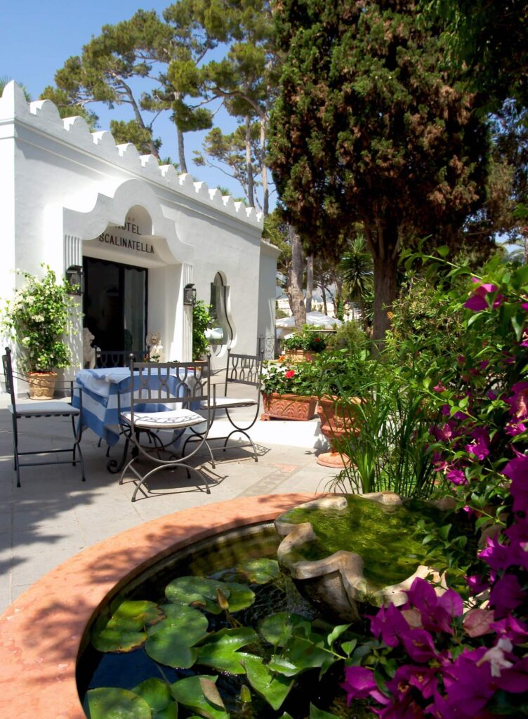 Wenn Sie die blumengeschmückte Via Tragara entlang spazieren, vorbei an duftenden Gärten und verlockenden Blicken auf das Meer, werden Sie bald auf die maurische Fassade von La Scalinatella stoßen. Genießen Sie die herrliche mediterrane Sonne an einem der hoteleigenen Pools, genießen Sie die köstliche Inselküche, die zur Mittagszeit auf der Terrasse mit Meerblick serviert wird. Von den handbemalten Majolika-Bodenfliesen über die Gewölbedecken bis hin zu wertvollen Antiquitäten: Im La Scalinatella wurde jedes Detail sorgfältig entworfen, um die Zimmer des Hotels in die exquisitesten und intimsten Rückzugsorte der Insel zu verwandeln.