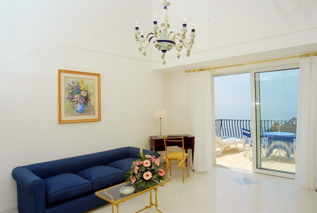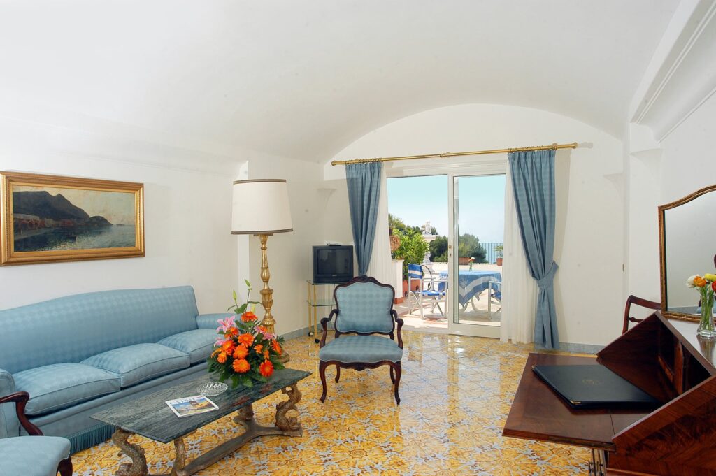 Viele der denkwürdigsten Momente Ihres Urlaubs im La Scalinatella verbringen Sie auf Ihrer Schlafzimmerterrasse: einem atemberaubenden Wohnzimmer unter freiem Himmel, von dem aus Sie einen atemberaubenden Blick auf das Meer und die malerische Bucht von Marina Piccola haben. Die Suiten von Scalinatella bestehen aus separaten Schlaf- und Wohnbereichen und verfügen über zwei Badezimmer mit jeweils einem Whirlpool und einer ebenerdigen Dusche. Die Zimmer sind im typischen Capri-Stil mit handbemalten Majolika-Bodenfliesen, Gewölbedecken und exquisiten antiken Möbeln eingerichtet. Alle Suiten verfügen über eine eigene große Terrasse mit Meerblick, die mit einem Tisch und Stühlen ausgestattet ist.